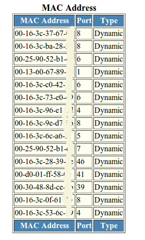 Every switch has a MAC table. This table shows which provides a mapping from MAC addresses to physical ports.